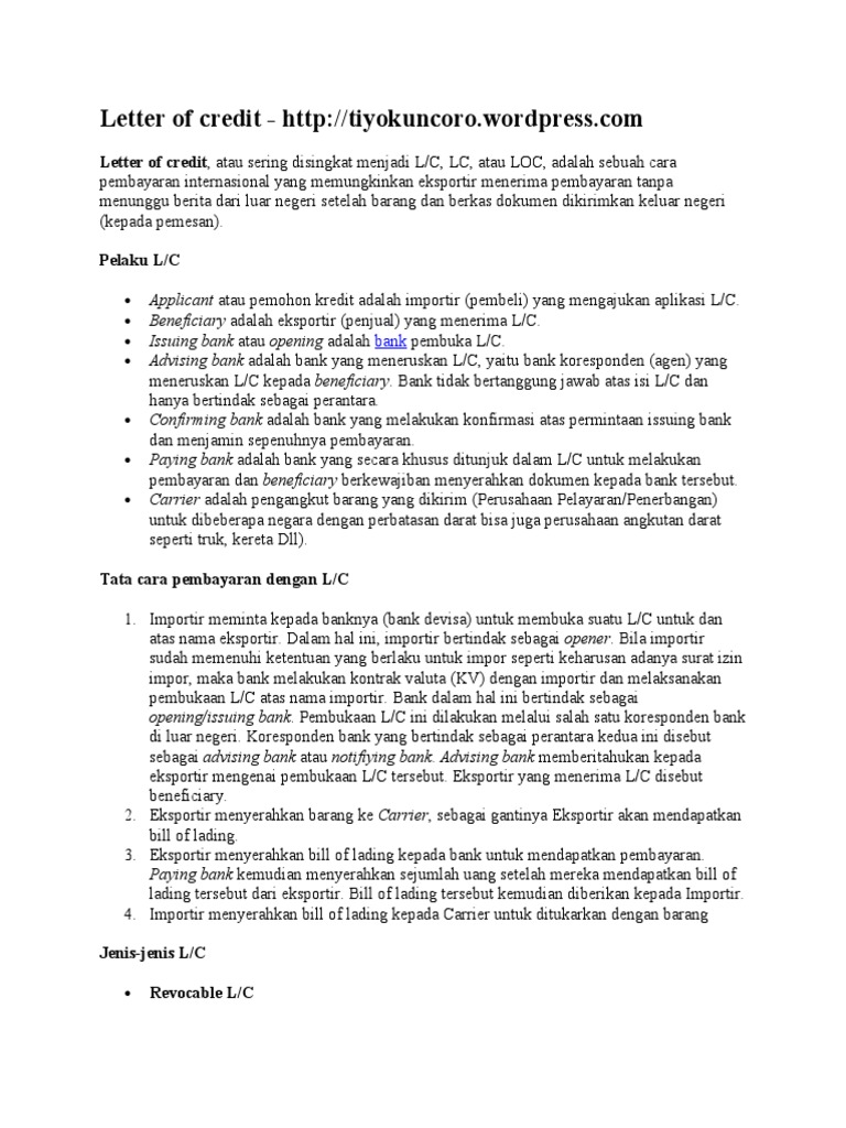 Pemberian garansi bank oleh pihak bank kepada nasabahnya, dimaksudkan untuk menjadi sebuah jaminan tertulis dalam memenuhi sebuah kewajiban tertentu, di mana apabila suatu. Paying bank adalah bank yang secara khusus ditunjuk dalam l/c untuk melakukan pembayaran dan beneficiary berkewajiban carrier adalah pengangkut barang yang dikirim (perusahaan pelayaran/penerbangan) untuk dibeberapa negara dengan perbatasan darat bisa juga perusahaan angkutan darat seperti truk, kereta dll). Demand guarantee merujuk kepada uniform rules for demand guarantee (urdg) 758.