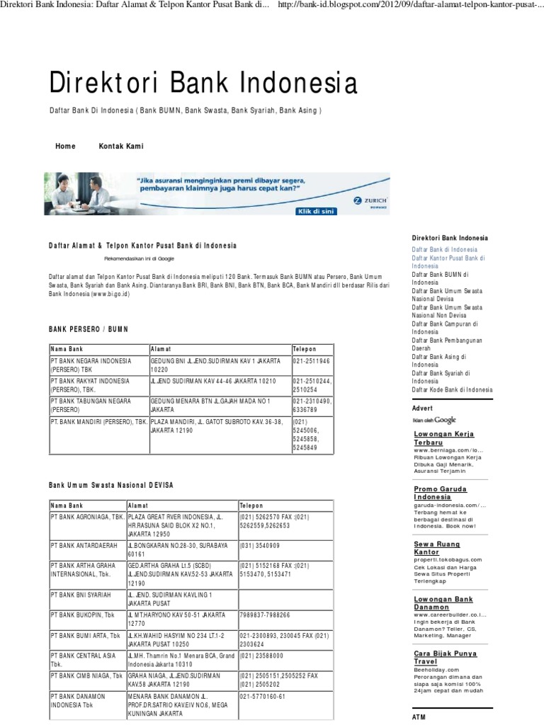 Daftar Alamat Bank Syariah Di Indonesia Berbagai Alamat